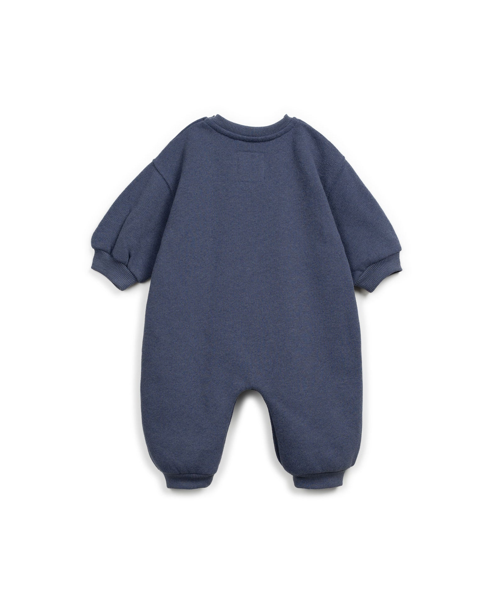 Tuta intera in felpa invernale color carta da zucchero. Collo, polsini e fondo a costine. Apertura sulla spalla con bottoni in cocco e apertura sul cavallo con bottoni automatici senza nichel. Una comodissima e calda tuta Play Up, pensata da Les Bulles per le giornate invernali. Questo capo è prodotto con fibre riciclate, a tutela dell'ambiente. 74% cotone, 13% cotone riciclato, 13% poliestere riciclato. Made in Portogallo