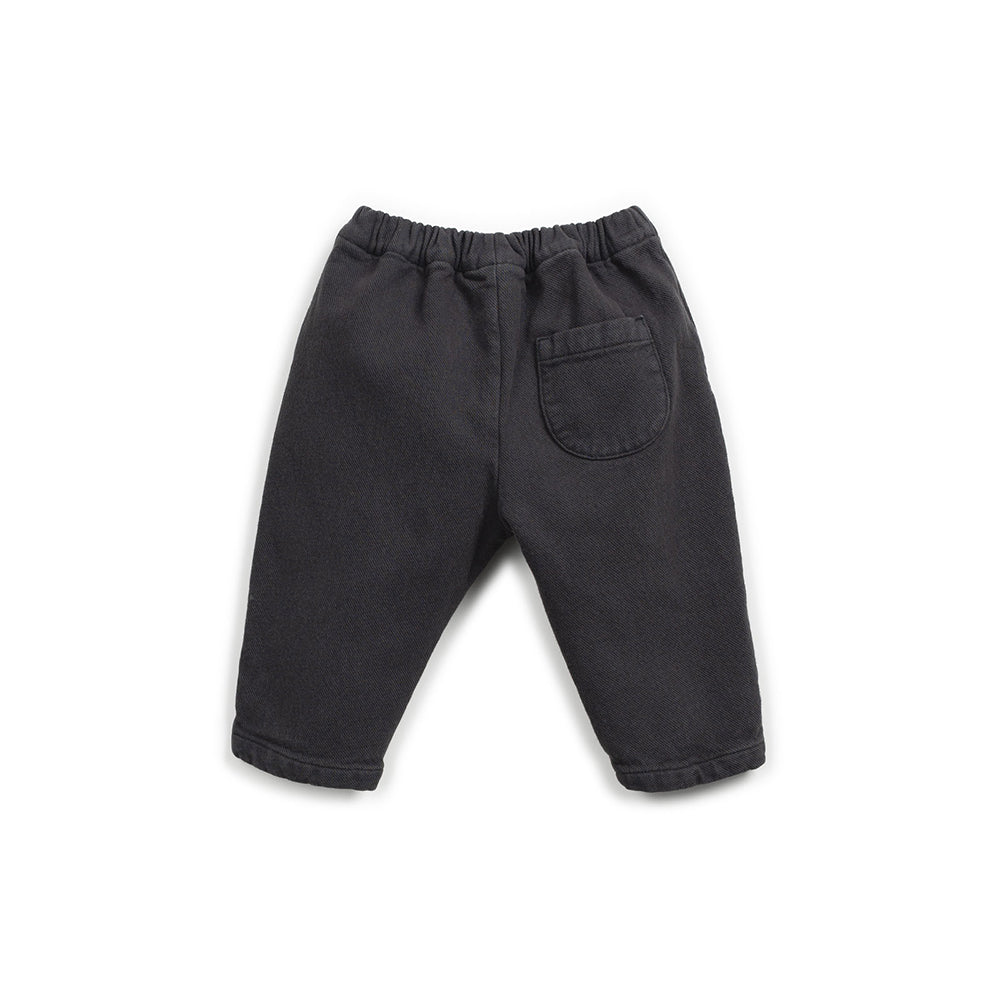 Pantalone lungo in twill di cotone antracite. Elastico in vita e taschino sul retro. Cuciture decorative sul davanti e vestibilità morbida. Un pantalone che Les Bulles consiglia anche per i più piccoli, dato il modello largo e morbido. Play Up utilizza per questo capo una tintura naturale, priva di sostanze chimiche e rispettosa dell'ambiente. 100% cotone. Made in Portogallo