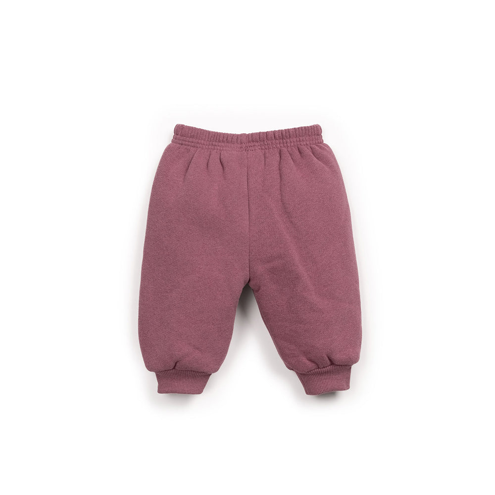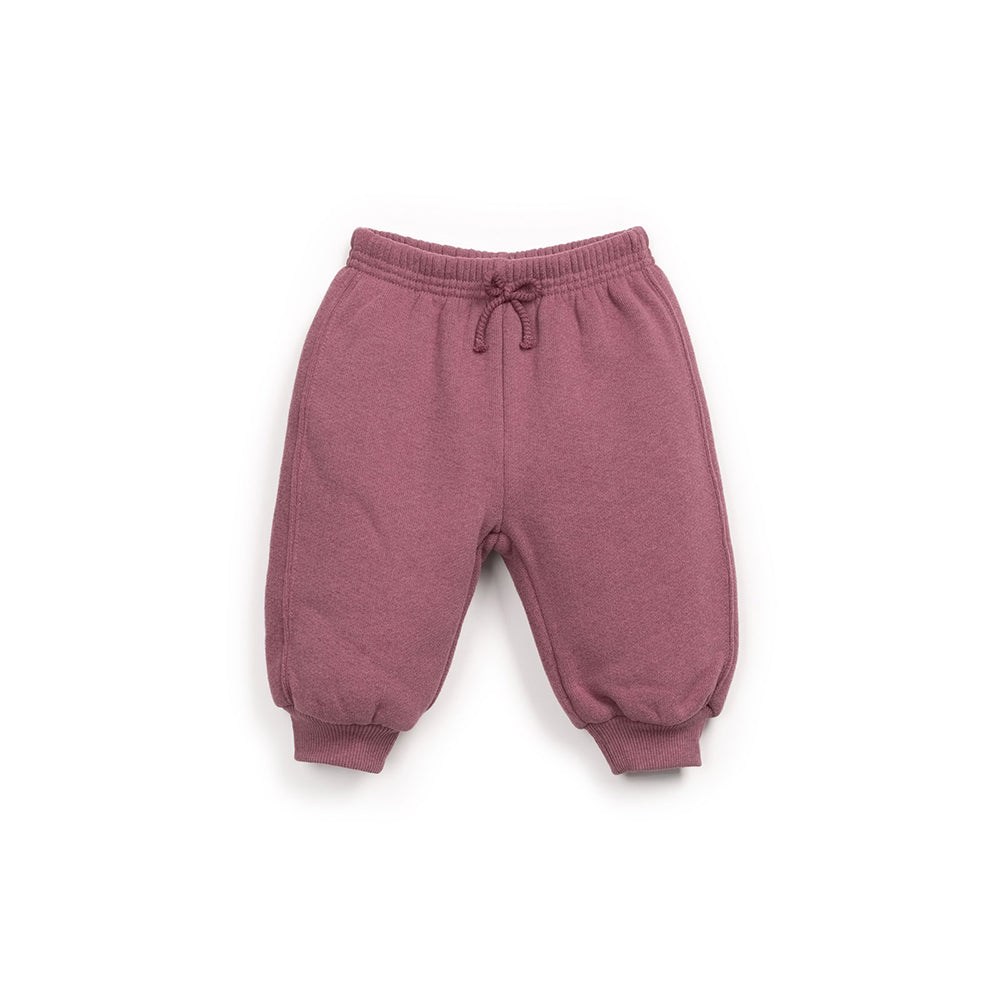 Pantalone jogger in cotone felpato color vino. Elastico in vita e finta coulisse sul davanti con cordoncino a fiocco. Polsini a costine alle caviglie. Un pantalone morbido e caldo, che Les Bulles ha pensato per i giorni più freddi. Play Up, azienda attenta all'ecosostenibilità, utilizza in parte fibre riciclate. 74% cotone, 13% cotone riciclato, 13% poliestere riciclato. Made in Portogallo