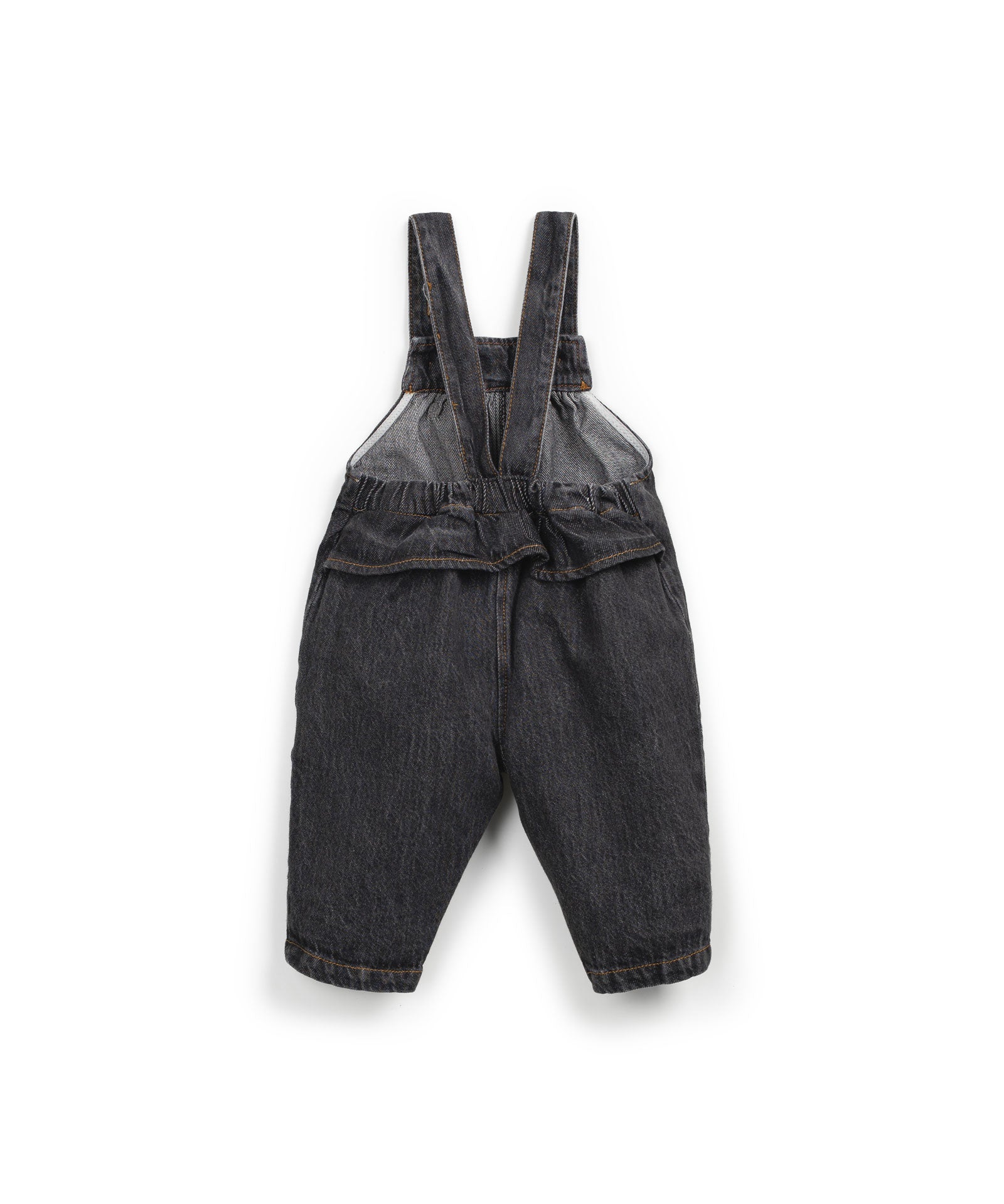 Salopette lunga in bellissimo denim di cotone con lavaggio nero. Bretelle regolabili, che si chiudono sul davanti con bottoni in cocco. Arricciture sulla pettorina e apertura sul cavallo con bottoni automatici. Rouche sulla schiena e taschino applicato sul davanti. Fit largo per questa salopette Play Up, che la rende ideale per essere indossata anche dai più piccoli. Les Bulles fa notare che il lavaggio di questo jeans avviene con un candeggiante enzimatico che rispetta l'ambiente. 100% cotone. Made in Portogallo