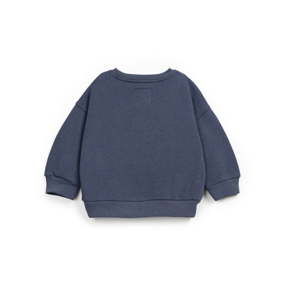 Felpa girocollo a manica lunga in caldo e morbido cotone blu carta da zucchero. Polsini, collo e fondo a costine. Cotone felpato internamente. Questa felpa Play Up è prodotta in parte con fibre riciclate, nel pieno rispetto dell'ambiente e per limitare l'impatto della produzione sul pianeta, come piace a noi di Les Bulles. Vestibilità abbondante. 74% cotone, 13% cotone riciclato, 13% poliestere riciclato. Made in Portogallo