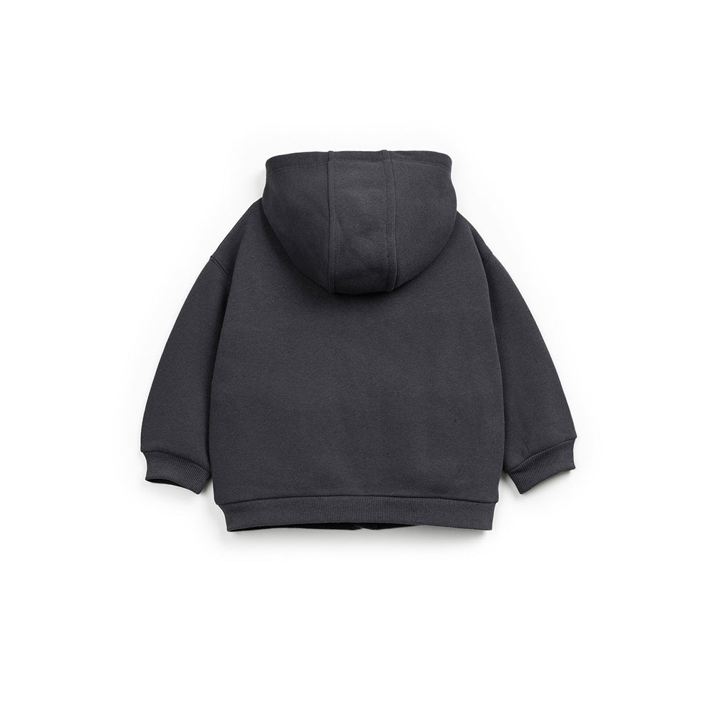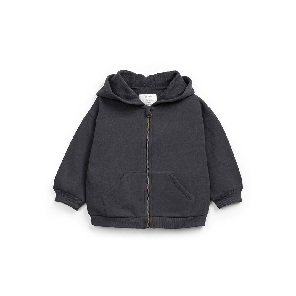 Felpa con cappuccio a manica lunga, in cotone invernale antracite. Apertura frontale con zip e tasca a marsupio sul davanti. Polsini e fondo a costine. Questa calda felpa è pensata da Les Bulles per l'inverno ed è ideale da abbinare al pantalone dello stesso tessuto di Play Up. 74% cotone, 13% cotone riciclato, 13% poliestere riciclato. Made in Portogallo